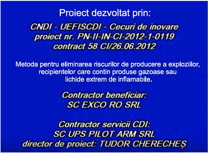 Recent, cercetările tehnologice moderne au condus la crearea unui sistem care elimină complet riscul producerii de explozii în recipientele care conţin produse gazose şi lichide extrem de inflamabile, sistem care este disponibil în România prin unicul reprezentant şi distribuitor autorizat S.C. Exco Ro S.R.L.